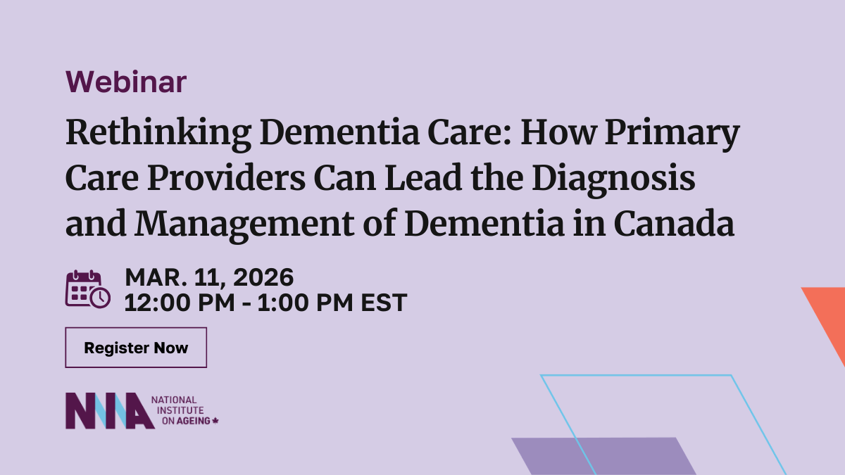 The National Institute on Ageing (NIA), is hosting an upcoming webinar on how primary care providers can lead dementia diagnosis and management, plus the national report on Addressing Dementia in Canada is now available in French.